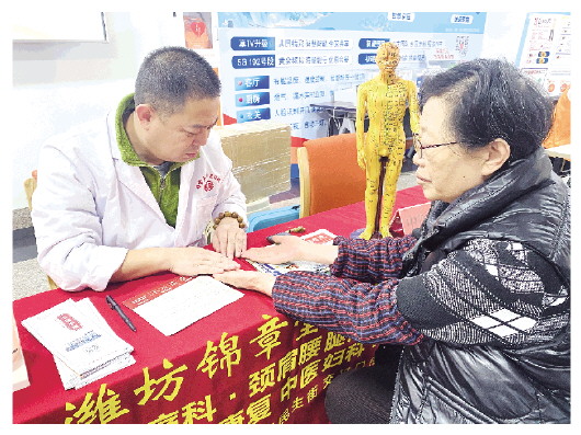 10月27日,奎文区北海路街道南湖社区联合爱心单位,在社区活动大厅举行爱心义诊活动。活动现场,医护人员为老年居民免费量血压、测血糖、进行中医把脉问诊等,并答疑解惑,让老年人在“家门口”享受到便捷的医疗服务。现场还设置了养生茶饮品鉴、手工制作等互动环节,氛围温馨融洽。 本报记者 王来臣 通讯员 闫惠杰