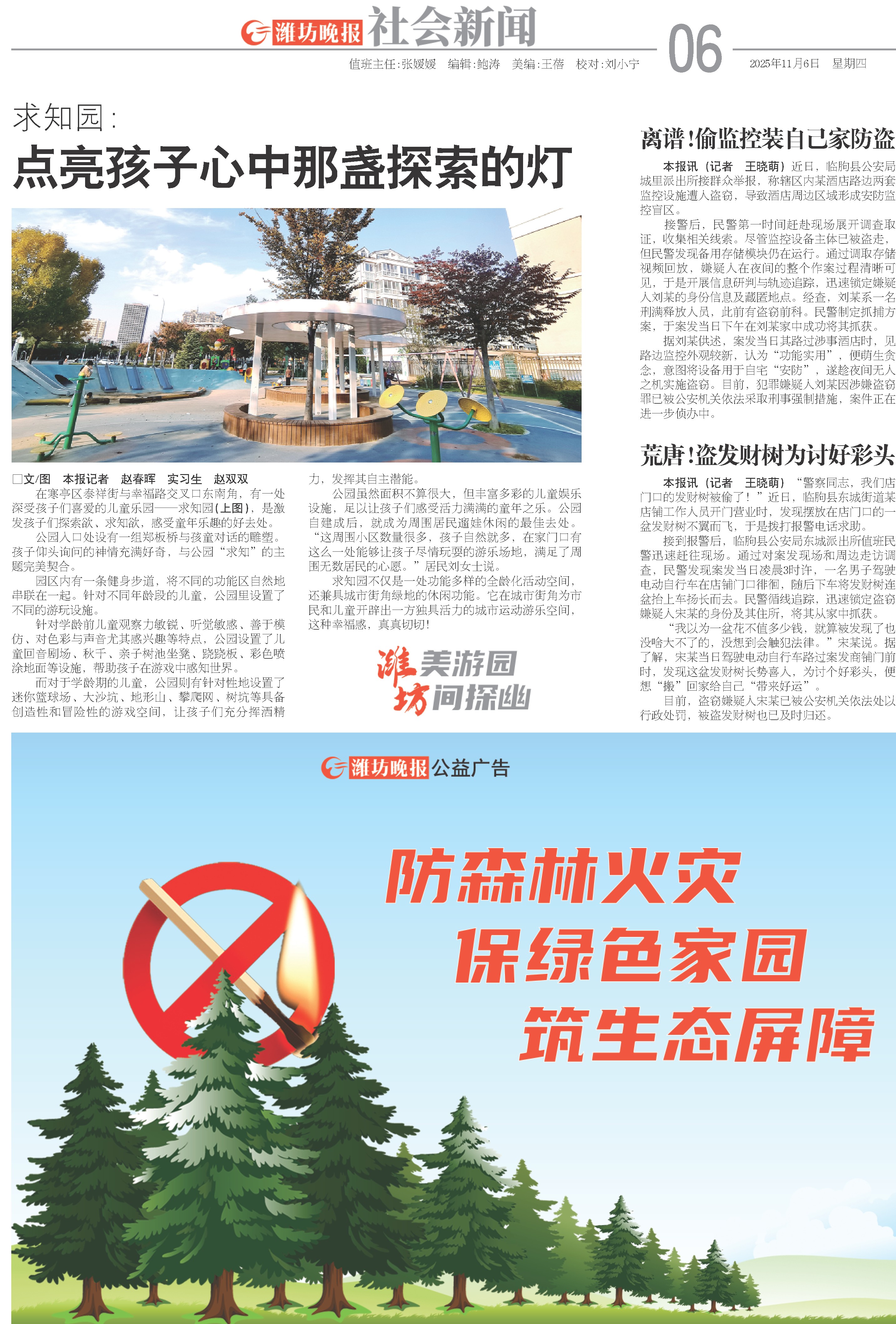 在寒亭区泰祥街与幸福路交叉口东南角,有一处深受孩子们喜爱的儿童乐园——求知园(上图),是激发孩子们探索欲、求知欲,感受童年乐趣的好去处。