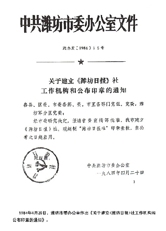 1984年7月1日,第一份《潍坊日报》与读者见面了。首任党委书记、总编辑李思学在回忆文章里,回溯了那段荆棘与荣光交织的创刊岁月。