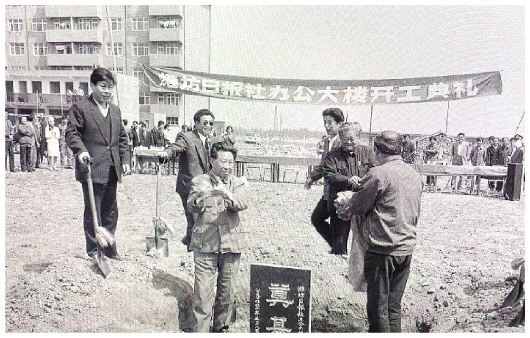 曾任报社党委书记、总编辑的崔乃元在《创业艰难百战多》文章中回忆:“1992年5月8日,办公大楼举行了开工典礼,市四大班子领导同志参加了奠基。”开工之后最困难的是资金问题,市领导也给予了非常大的支持。在建楼过程中,崔乃元称:“购进建筑材料、支付建筑单位费用等资金随时都会卡壳。党委同志带头,发动千部职工或跑银行贷,或求亲告友借。有一次建设工地选材料财务科账上没钱付,幸亏副总编吕熙祥同志去高密老家向企业借了一笔款,才解了燃眉之急。就这样,在风风雨用中一砖一瓦地硬是把大楼盖起来。在办公大楼竣工的同时,当时配套的锅炉房及沿街房、职工宿舍等也逐步建起来。