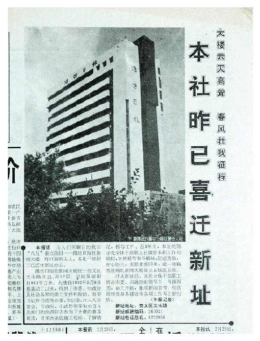 1995年2月,报社干部职工由潍州路搬进文化路500号新址新大楼。