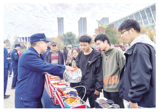 “油锅起火不能用水浇,要用锅盖盖住隔绝空气。”在消防科普实践区,消防员的生动讲解让群众听得认真、记得仔细。来自山东信息职业技术学院的学生们在消防游戏互动区玩得不亦乐乎:“这种学习方式很有趣,不仅玩得开心,还记住了很多消防知识。”