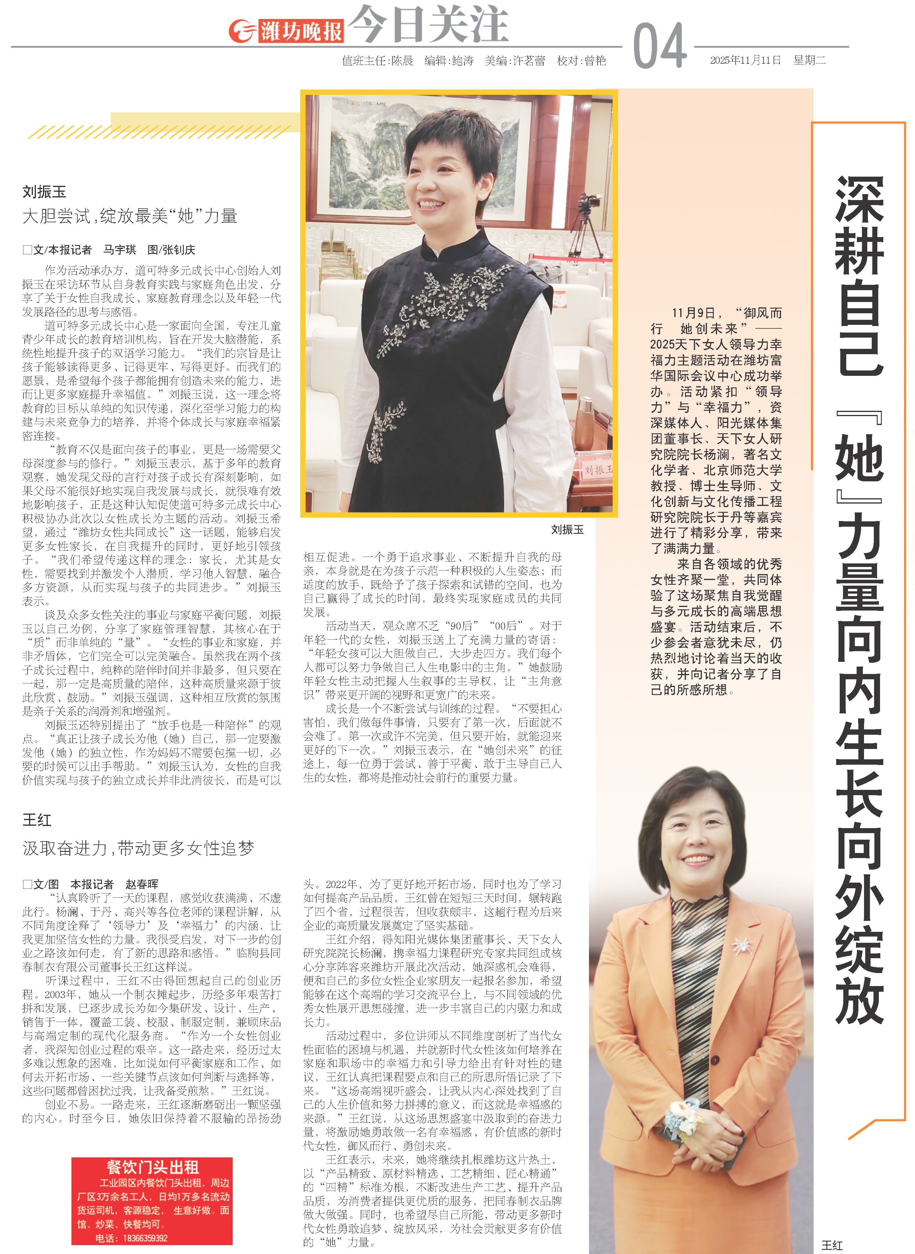 成长是一个不断尝试与训练的过程。“不要担心害怕,我们做每件事情,只要有了第一次,后面就不会难了。第一次或许不完美,但只要开始,就能迎来更好的下一次。”刘振玉表示,在“她创未来”的征途上,每一位勇于尝试、善于平衡、敢于主导自己人生的女性,都将是推动社会前行的重要力量。