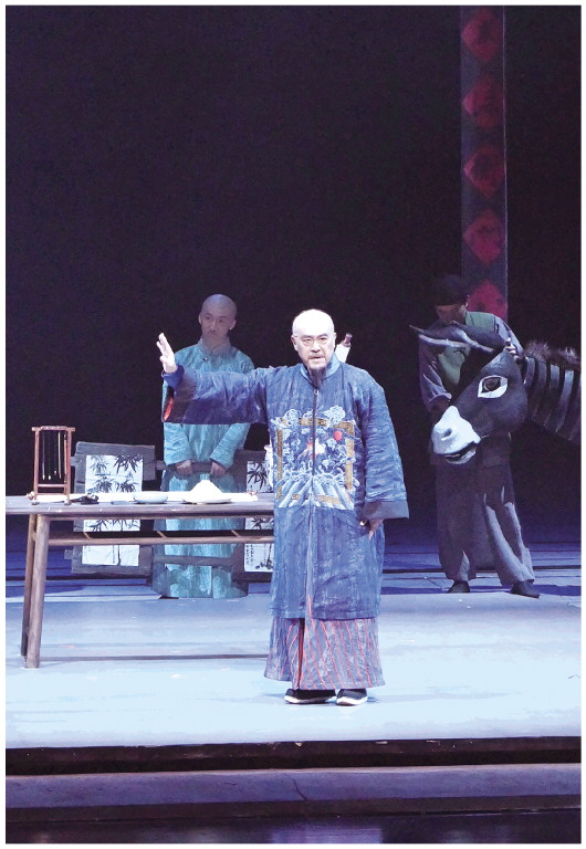 11月11日晚,由市纪委监委联合中国保利集团纪委共同打造的廉洁文化主题话剧《枝叶关情·郑板桥》,在潍坊保利大剧院精彩上演。导演兼主演、北京人民艺术剧院一级演员何冰凭借精湛演技,将郑板桥的文人洒脱与清官担当融为一体,每一个神态、每一句台词都直击人心。图为演出现场。 本报记者 王晓光