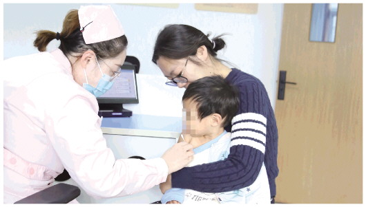 近日,在潍城区南关街道社区卫生服务中心,一名孩童在接种流感疫苗。随着气温下降,流感病毒进入活跃期。作为预防流感最有效的手段,接种流感疫苗不仅能够保护自己,也能保护身边的家人朋友。
