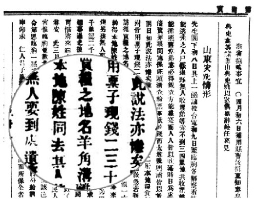 这篇文章题为《山东灾荒情形》,署名“修月主人”。修月主人系上海一富绅、慈善家,姓甚名谁,已不可考。文章引述了这年4月22日赴山东临朐经办放赈友人的来信,这位放赈者的名字亦无记载。