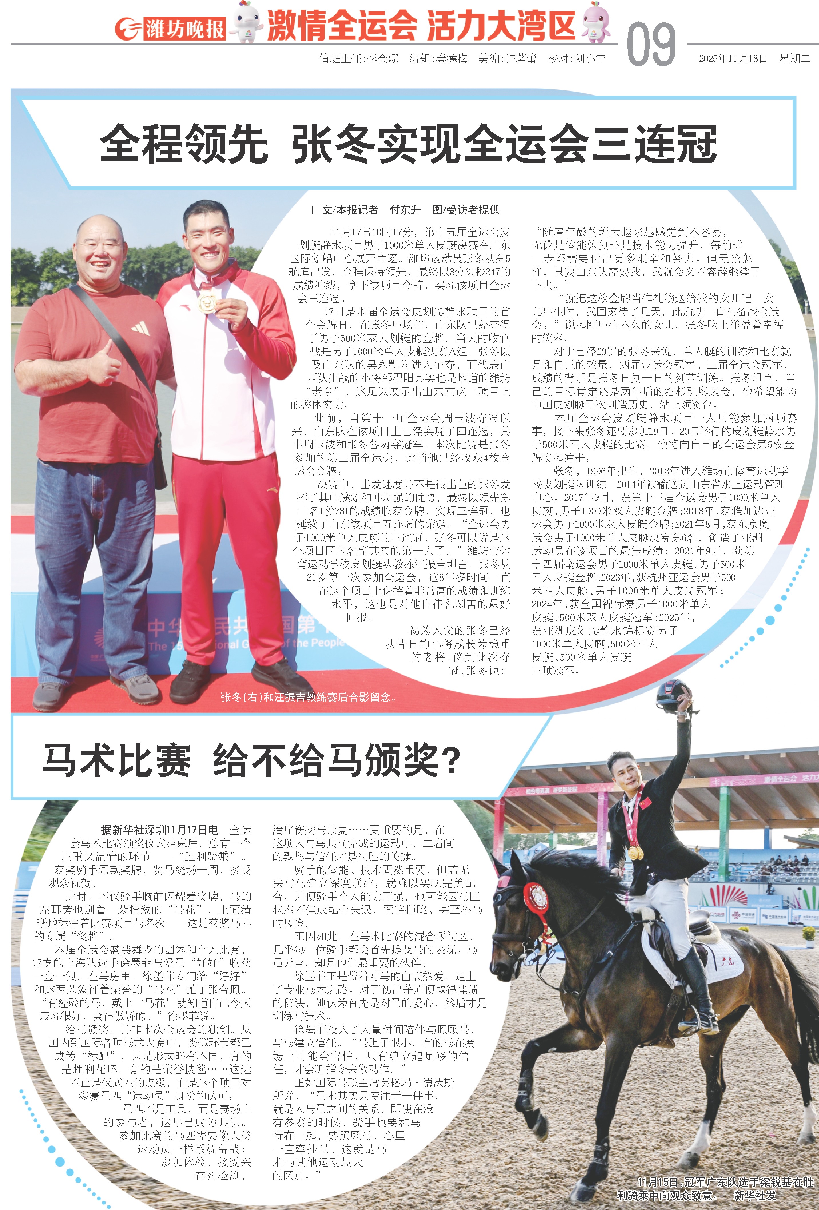 17日是本届全运会皮划艇静水项目的首个金牌日,在张冬出场前,山东队已经夺得了男子500米双人划艇的金牌。当天的收官战是男子1000米单人皮艇决赛A组,张冬以及山东队的吴永凯均进入争夺,而代表山西队出战的小将邵程阳其实也是地道的潍坊“老乡”,这足以展示出山东在这一项目上的整体实力。