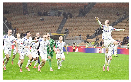 据新华社柏林11月16日电 2026美加墨足球世界杯欧洲区预选赛第一阶段小组赛收官轮次16日开打。焦点战中,葡萄牙队在主场9∶1大胜亚美尼亚队直接晋级;挪威队在客场4∶1逆转意大利队,以全胜战绩获得世界杯入场券。
