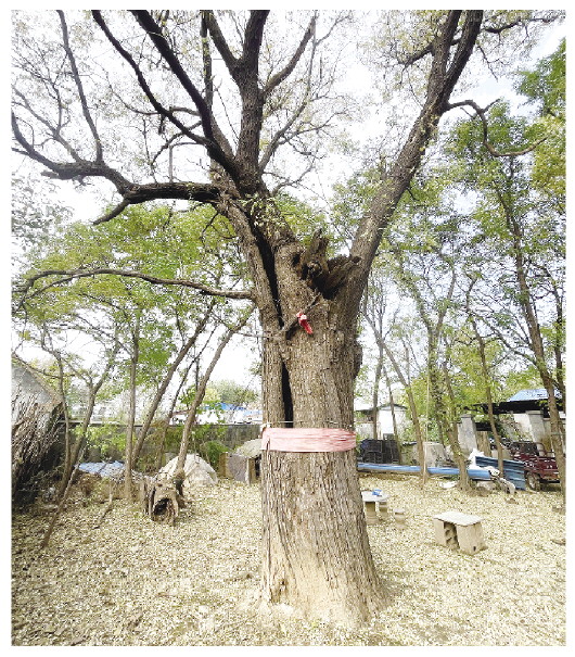 在青州市邵庄镇宋家庄村,一棵经历了600年风霜洗礼的古槐(右图),被村民视为大自然给予的绿色瑰宝。近日,记者实地探访了这棵古槐。