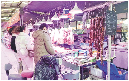 当天,记者在玄家朱茂便民市场看到,几乎每家卖肉的摊位都在显眼位置悬挂着一串串灌好的香肠,吸引了众多顾客的眼球,大家纷纷询问价格。“灌香肠猪肉肥瘦比例是2:8,前肘肉、后肘肉售价均为每斤12元,加工费每斤收3元钱,加起来就是每斤15元钱。”一名卖肉的商户介绍道。在采访中,不少商户表示,近段时间,灌香肠的市民多了起来,猪肉销量比平时翻了近一番。