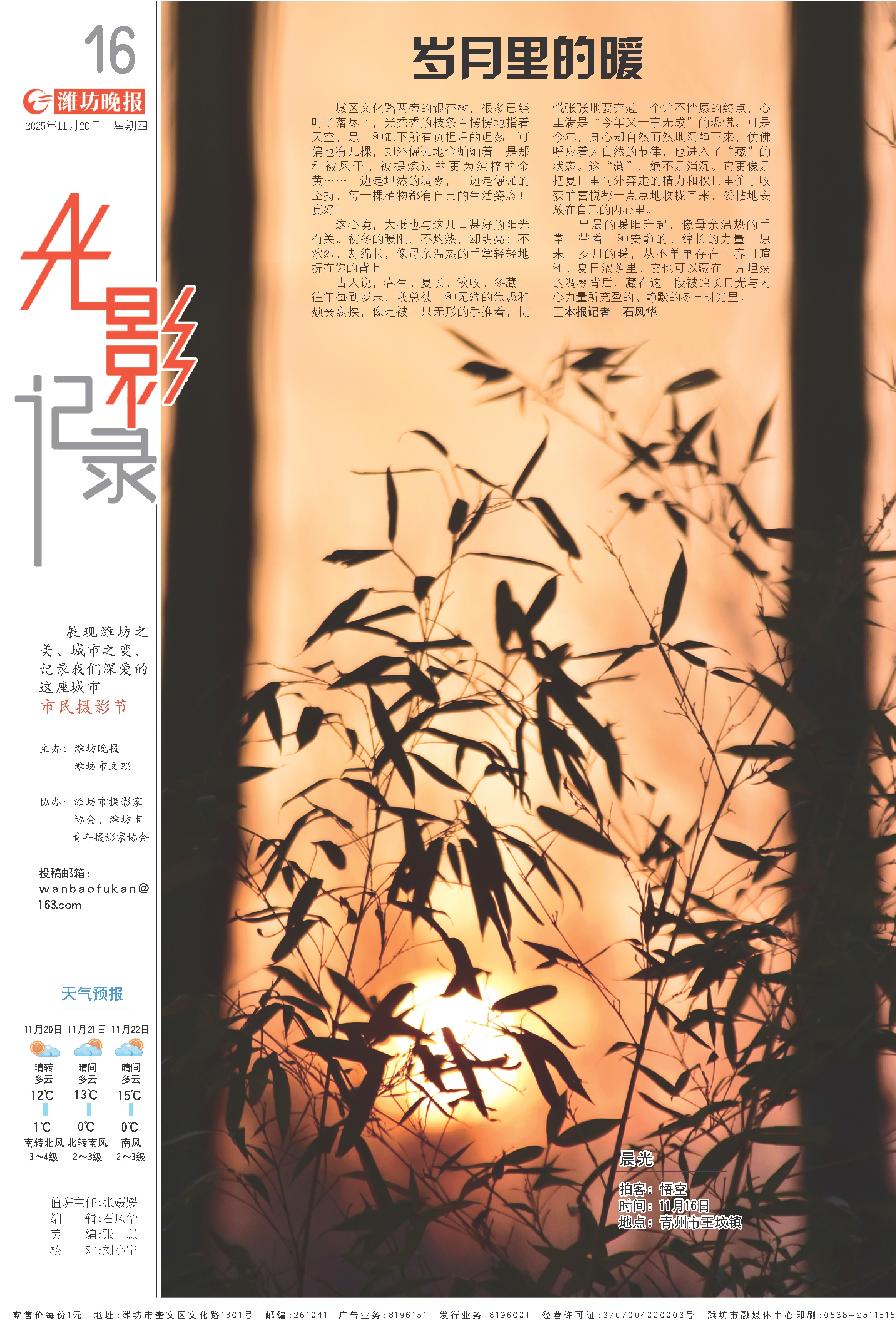 这心境,大抵也与这几日甚好的阳光有关。初冬的暖阳,不灼热,却明亮;不浓烈,却绵长,像母亲温热的手掌轻轻地抚在你的背上。