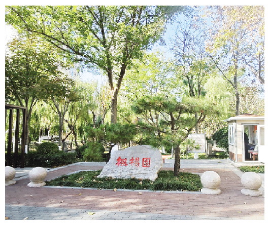 沿新华路与胜利东街交叉口东南角信步东行,首先迎接访客的是聚焦《中华人民共和国民营经济促进法》宣传的“正诚园”。一入园,几棵高大的泡桐树亭亭如盖,以其为中心巧妙构建了一处林下休憩空间。地面采用清新的蓝色透水铺装,其间描绘以“守法笃行”等字样与运动图案,环绕树干的休闲座椅为市民提供了小憩的场所,而东侧亮黄色的攀爬架与座椅则以其明快的色彩,点亮了冬日的角落,充满了活力。