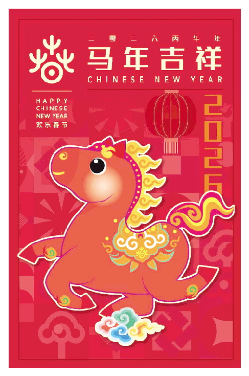 “吉祥马”以甘肃武威出土的东汉铜奔马“马踏飞燕”为设计灵感,借鉴唐代五花马的鬃毛装饰手法,主色采用中国红,辅以祥云纹、如意纹等经典传统纹样,体现中国春节温暖、喜庆的氛围。
