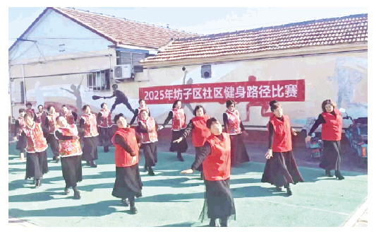 本报讯(记者 付东升)近日,2025年坊子区社区健身路径比赛坊城赛区火热开赛,西城社区前埠头健身广场、前宁村健身广场、西华昌社区小树林健身广场及五一社区凤栖园广场四大赛场同步竞技,230名居民以赛会友,尽享运动乐趣(上图)。