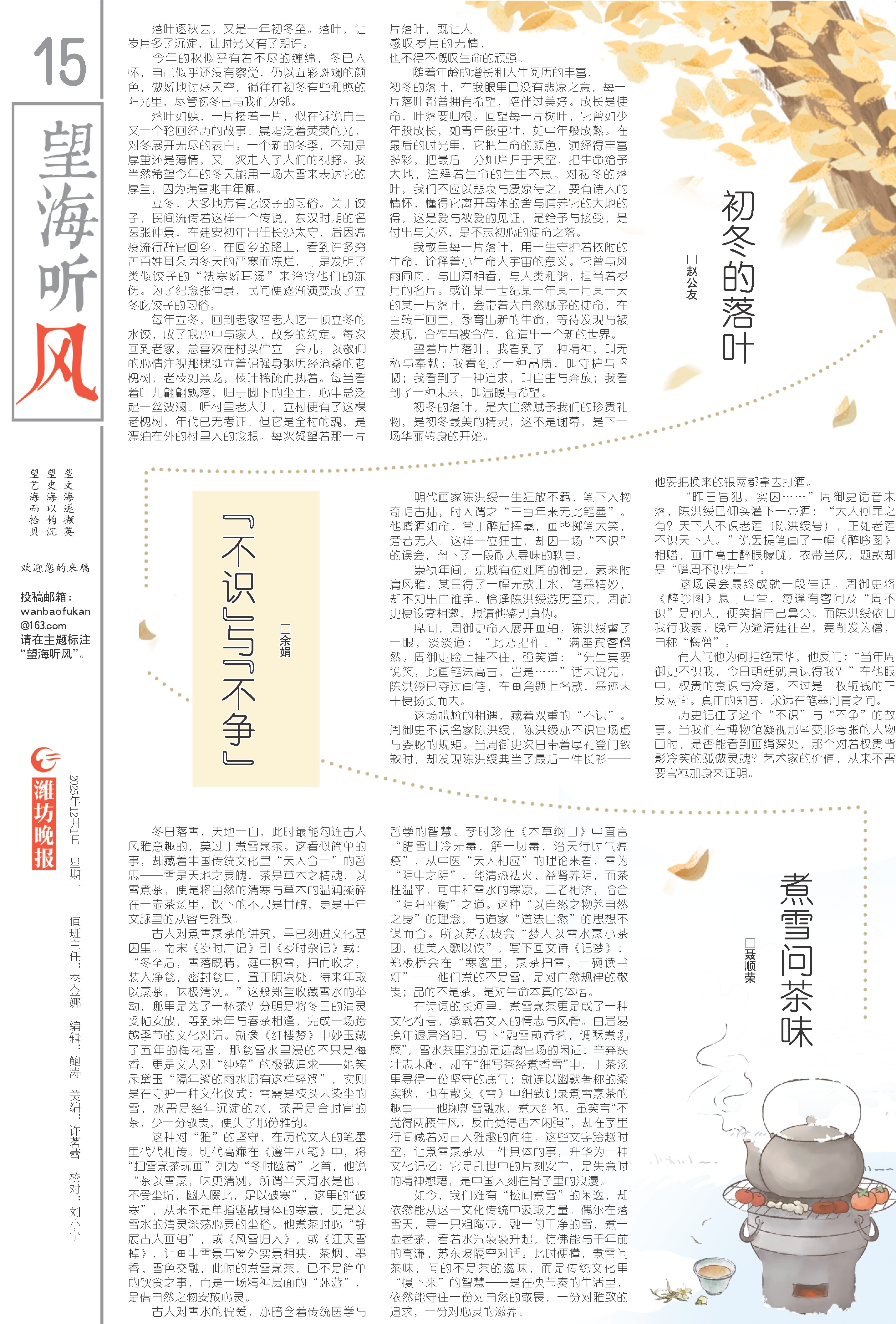 如今,我们难有“松间煮雪”的闲逸,却依然能从这一文化传统中汲取力量。偶尔在落雪天,寻一只粗陶壶,融一勺干净的雪,煮一壶老茶,看着水汽袅袅升起,仿佛能与千年前的高濂、苏东坡隔空对话。此时便懂,煮雪问茶味,问的不是茶的滋味,而是传统文化里“慢下来”的智慧——是在快节奏的生活里,依然能守住一份对自然的敬畏,一份对雅致的追求,一份对心灵的滋养。