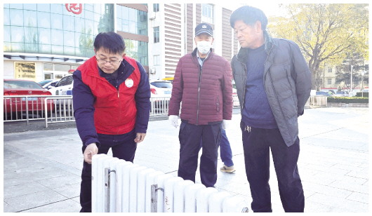 在广场上提供咨询的同时,由市、区两级供热管理人员、社区网格员、物业工作人员以及供热企业技术人员组成的74支“冬暖卫士”徒步巡查队深入小区楼栋,对供热设施开展拉网式排查。