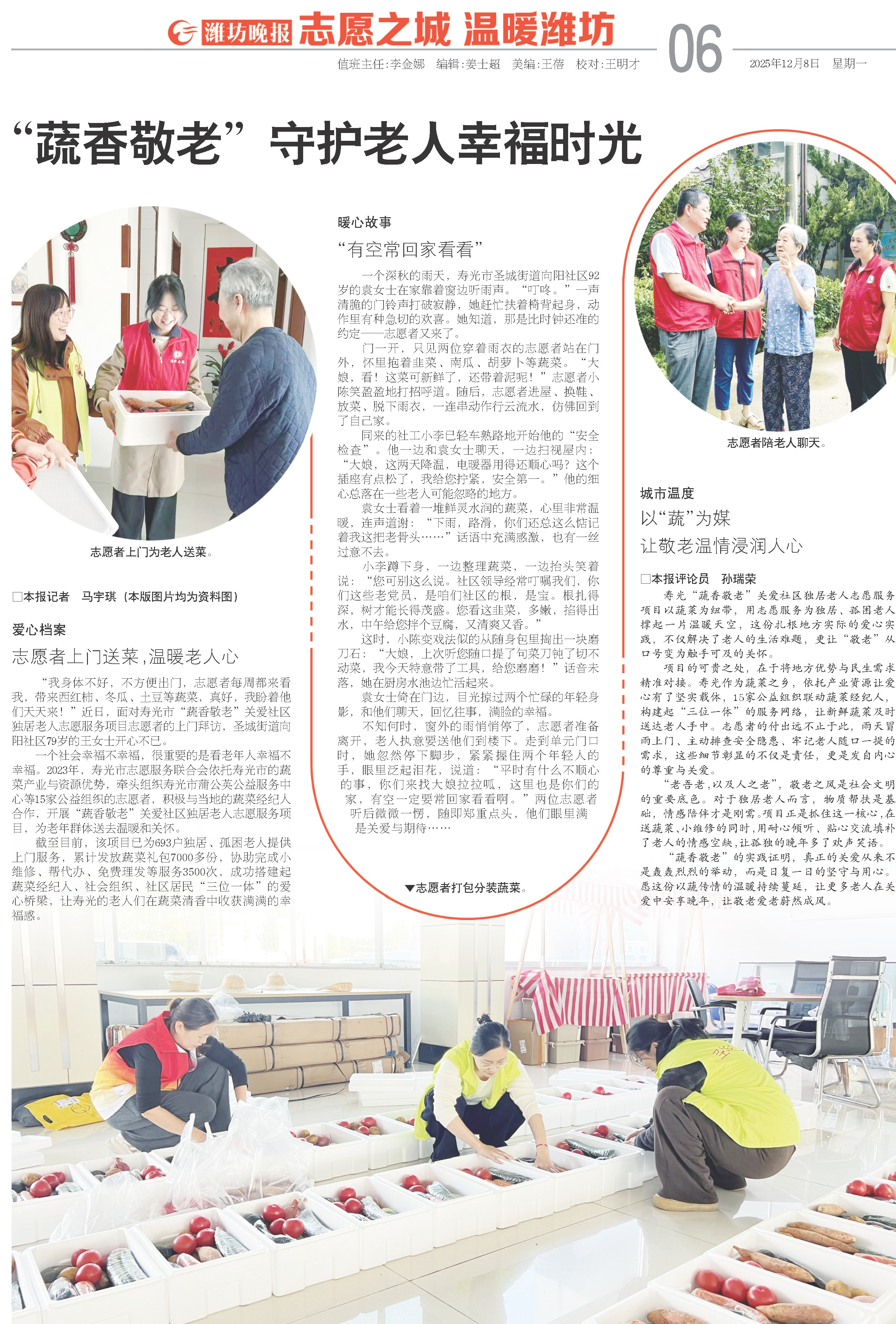 寿光“蔬香敬老”关爱社区独居老人志愿服务项目以蔬菜为纽带,用志愿服务为独居、孤困老人撑起一片温暖天空,这份扎根地方实际的爱心实践,不仅解决了老人的生活难题,更让“敬老”从口号变为触手可及的关怀。