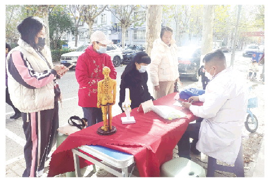 本报讯(记者 赵春晖 通讯员 包婷婷)为深入践行“强国复兴有我 我为群众办实事”的要求,把便民服务送到居民心坎上,近日,奎文区广文街道西上虞社区联合锦章堂中医医院开展了“健康义诊进社区”活动(上图),为居民送去贴心的健康服务。