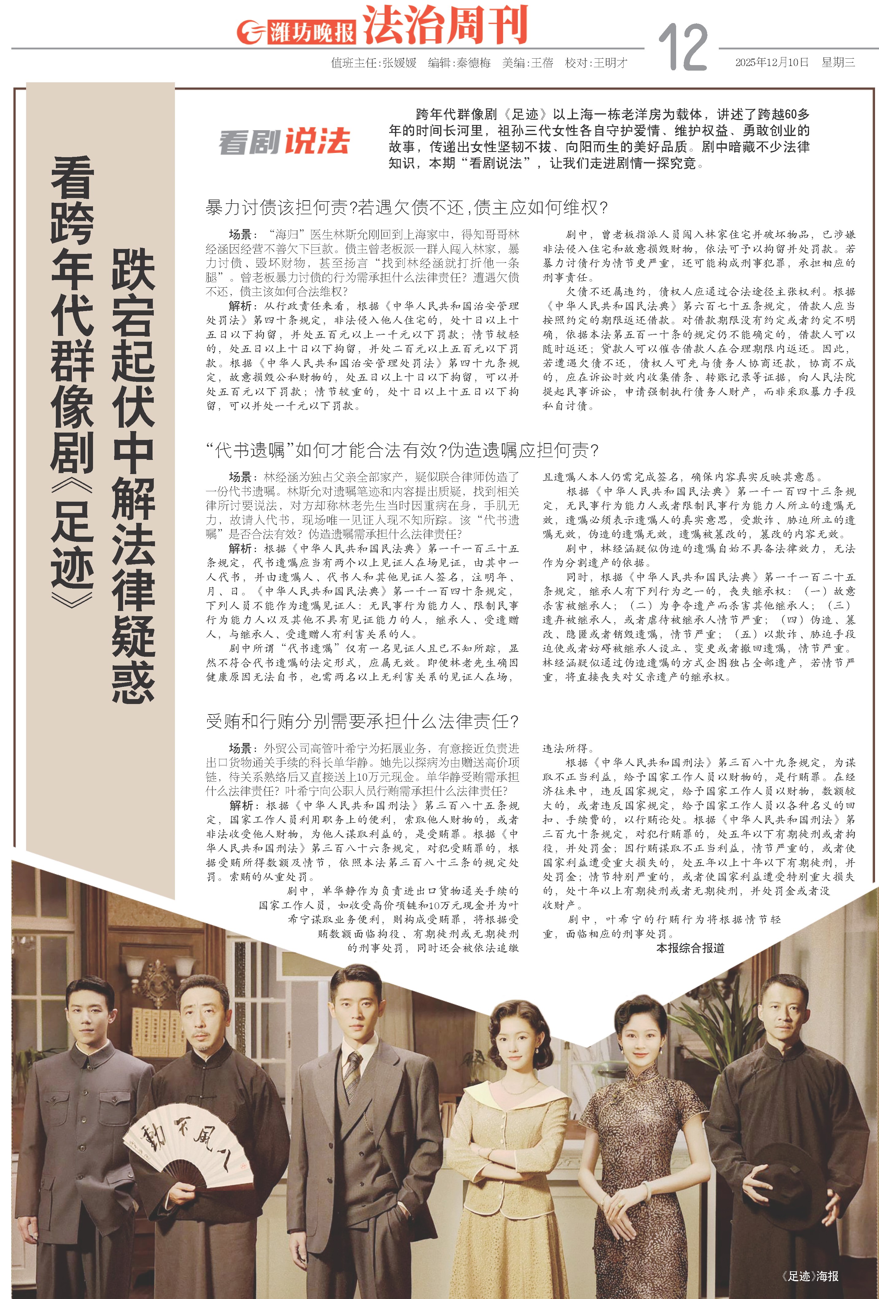 跨年代群像剧《足迹》以上海一栋老洋房为载体,讲述了跨越60多年的时间长河里,祖孙三代女性各自守护爱情、维护权益、勇敢创业的故事,传递出女性坚韧不拔、向阳而生的美好品质。剧中暗藏不少法律知识,本期“看剧说法”,让我们走进剧情一探究竟。