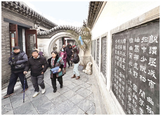 12月16日,在潍坊十笏园博物馆,游客正在参观游览。时值冬季,属于旅游市场淡季,但有“鲁东明珠”美誉的潍坊十笏园博物馆依旧吸引了众多游客前来游览。青砖灰瓦间,凝聚着历史的沧桑,更有浓重的人文气息,精美的古典园林景观令人流连忘返。 本报记者 张驰