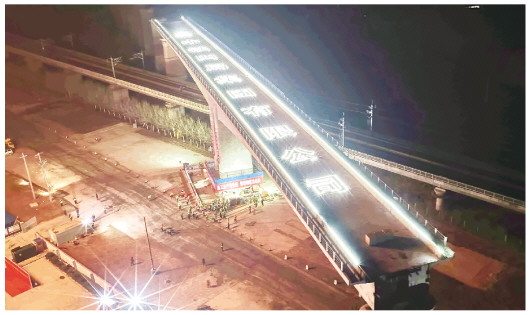 本报讯(记者 王瑗)12月19日零时6分,由雄安高速铁路有限公司建设、中铁四局承建的潍(坊)宿(迁)高铁——潍坊特大桥跨济青高铁连续梁成功转体。这是潍宿高铁首个跨高速铁路转体梁,也是山东省在建高铁项目最重的转体梁工程,打通了架梁通道上关键断点,为后续箱梁架设工作奠定了坚实基础。