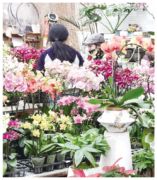 眼下,城区君泰花卉文化城一片生机勃勃。一个个摊位上摆满蝴蝶兰、菊花、绿萝、发财树、红掌等,空气中弥漫着阵阵花香,丰富的色彩和造型让人心生愉悦,吸引众多市民驻足观赏或选购。在百花争艳的“花花世界”中,蝴蝶兰因具有花期长、品种丰富、易打理等特点,稳稳占据市场“C”位。