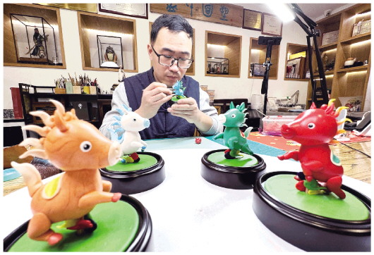 12月22日,在潍坊十笏园非遗空间,潍坊孟氏面塑第五代传承人孟祥祥正在制作“五福马”面塑作品。孟祥祥用揉、捏、剪、压等技艺手法制作了一组马年生肖面塑作品,从设计造型到色彩搭配,每一步都凝结着巧思,白、红、棕、蓝、绿,色彩各异的“五福马”憨态可掬,惹人喜爱。 本报记者 张驰