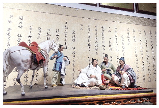 “这是我刚完工的作品《将进酒》,无论是果盘里的水果、李白手中的金樽,还是白马的尾巴,都非常逼真,这是我非常满意的作品。”曲英果指着刚完工的作品《将进酒》向记者介绍道,他在创作这件作品时,巧妙地利用色泽和刀工,展示出人物的逼真形象,让人们看到作品就能感受到“酒逢知己千杯少”的心境。