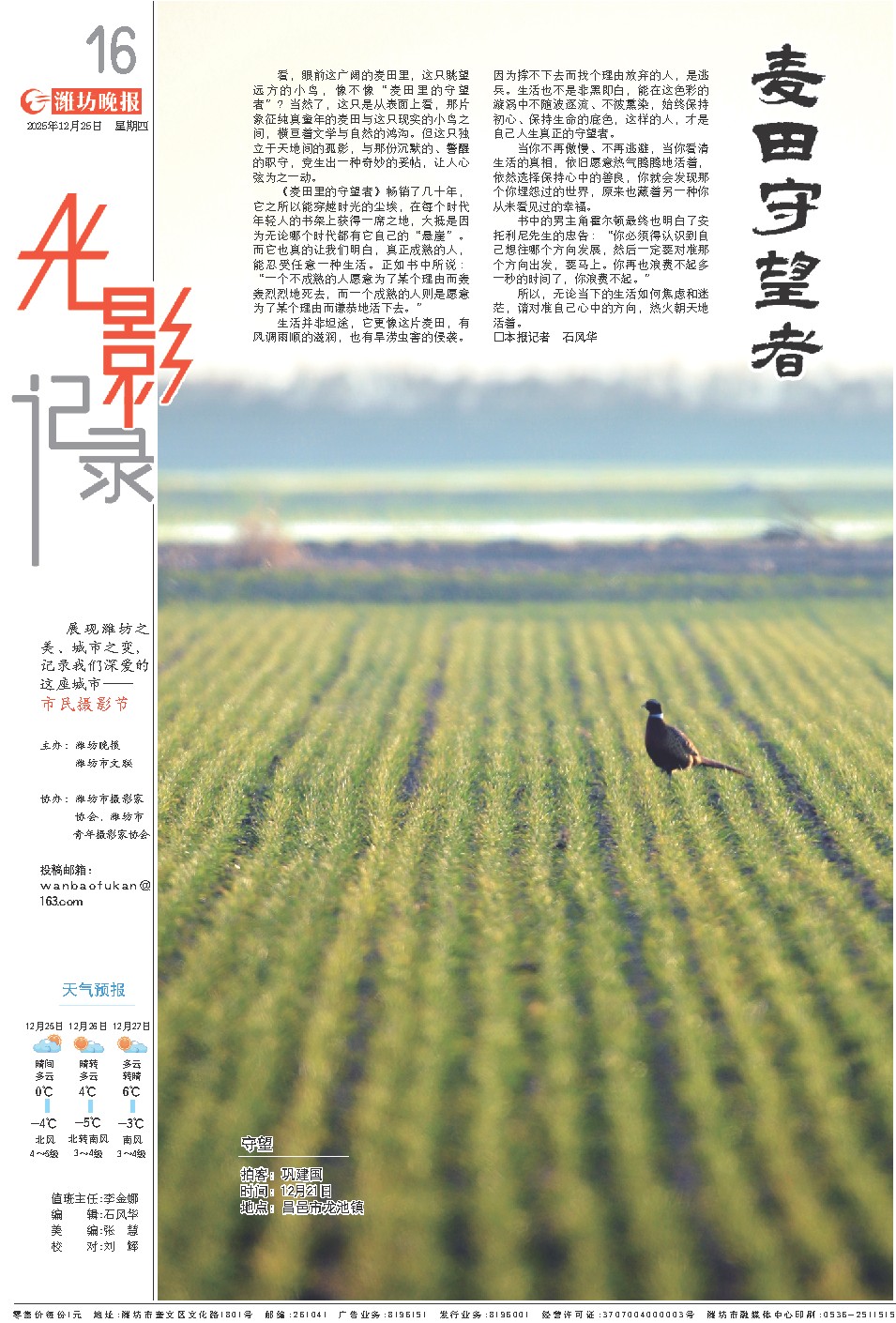 看,眼前这广阔的麦田里,这只眺望远方的小鸟,像不像“麦田里的守望者”?当然了,这只是从表面上看,那片象征纯真童年的麦田与这只现实的小鸟之间,横亘着文学与自然的鸿沟。但这只独立于天地间的孤影,与那份沉默的、警醒的职守,竟生出一种奇妙的妥帖,让人心弦为之一动。