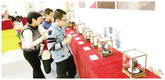 12月27日,在潍坊蛋雕展位现场,精美的蛋雕作品吸引大批参观者驻足观看(上图)。潍坊蛋雕市级非物质文化遗产代表性传承人王子敬告诉记者,此次参展的蛋雕作品包括《连心》《墨荷》《喜上眉梢》《陈介祺》《万印楼》《瑞启龙凤》《关圣龙威》《春山烟雨》等,皆为我市蛋雕手艺人匠心之作。这些作品题材广泛、技艺精湛,方寸间雕刻城市文脉,让人叹为观止。