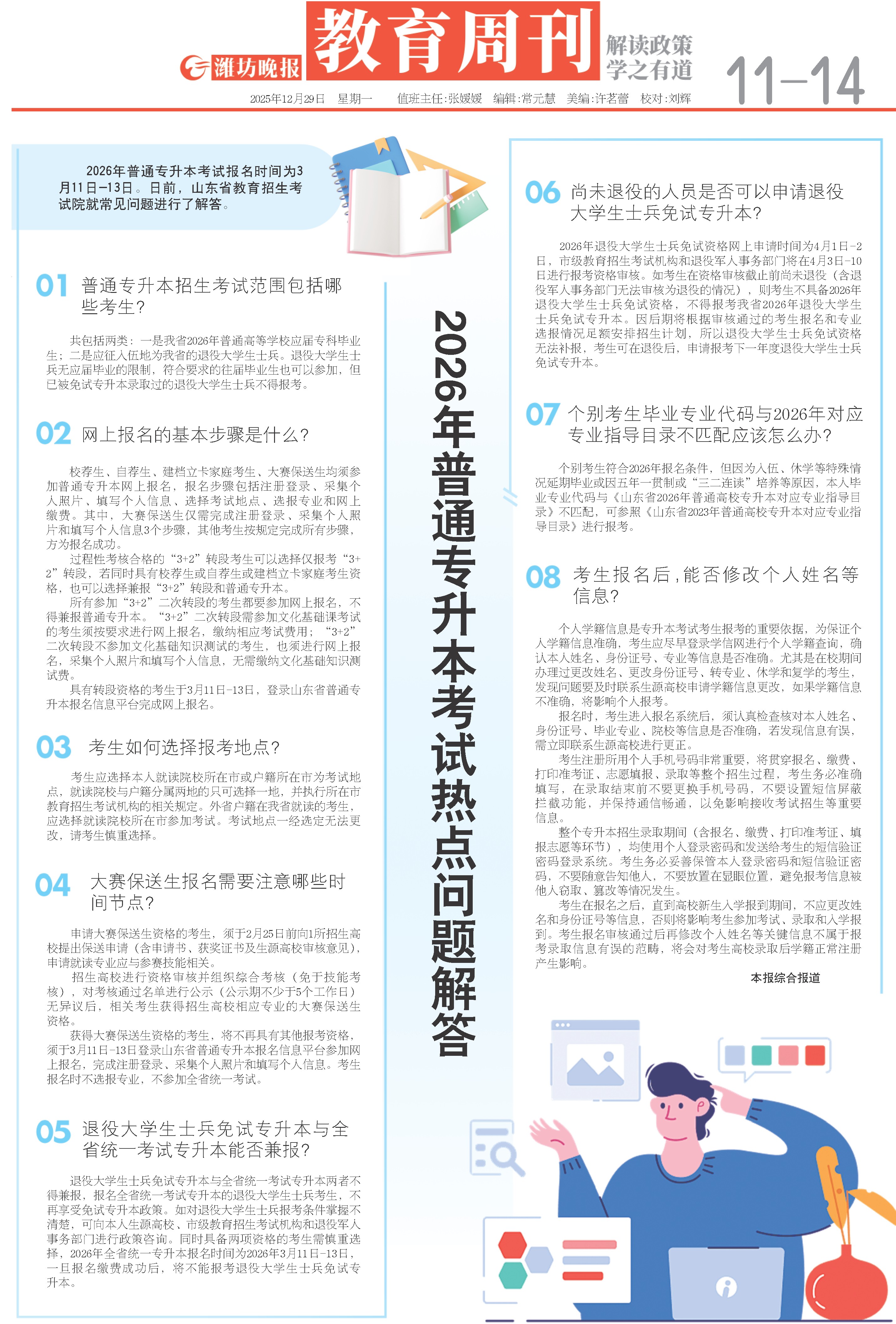 2026年普通专升本考试报名时间为3月11日-13日。日前,山东省教育招生考试院就常见问题进行了解答。