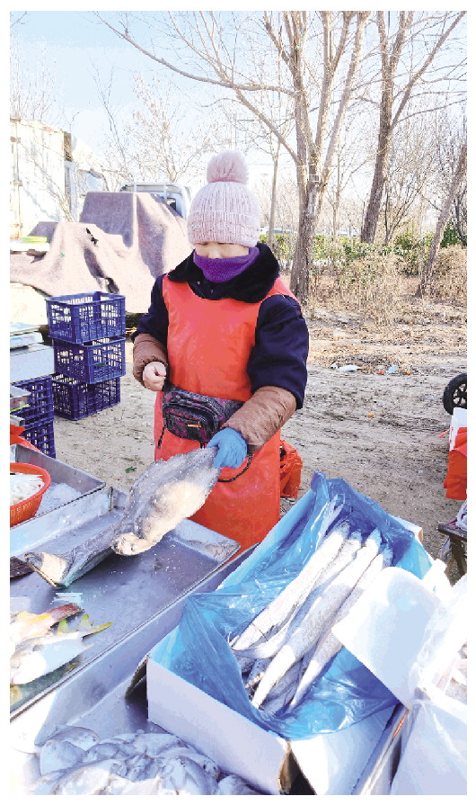 “过节时一天一趟,平时隔天跑。”马进军的妻子说。集市上,这样的故事多着呢,有的是父子兵,有的是夫妻档。他们的双手冻得红肿、泡得发皱,却稳稳回应着昌邑人挑剔的味蕾——那活虾虎和肥鲽鱼中午就会变成餐桌上的美味。