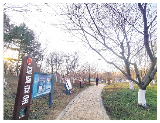 从位于宝通东街上的南门进入潍坊植物园,沿园区主干道左行不远,就进入了这片国家安全宣传教育阵地。道路两侧设置着诸多国家安全知识的宣传桁架、宣传栏、展板,这些设施与植物园里的亭、廊、榭、阁和自然风光融为一体,游人逛公园的过程中,不自觉就会被吸引,驻足细观。