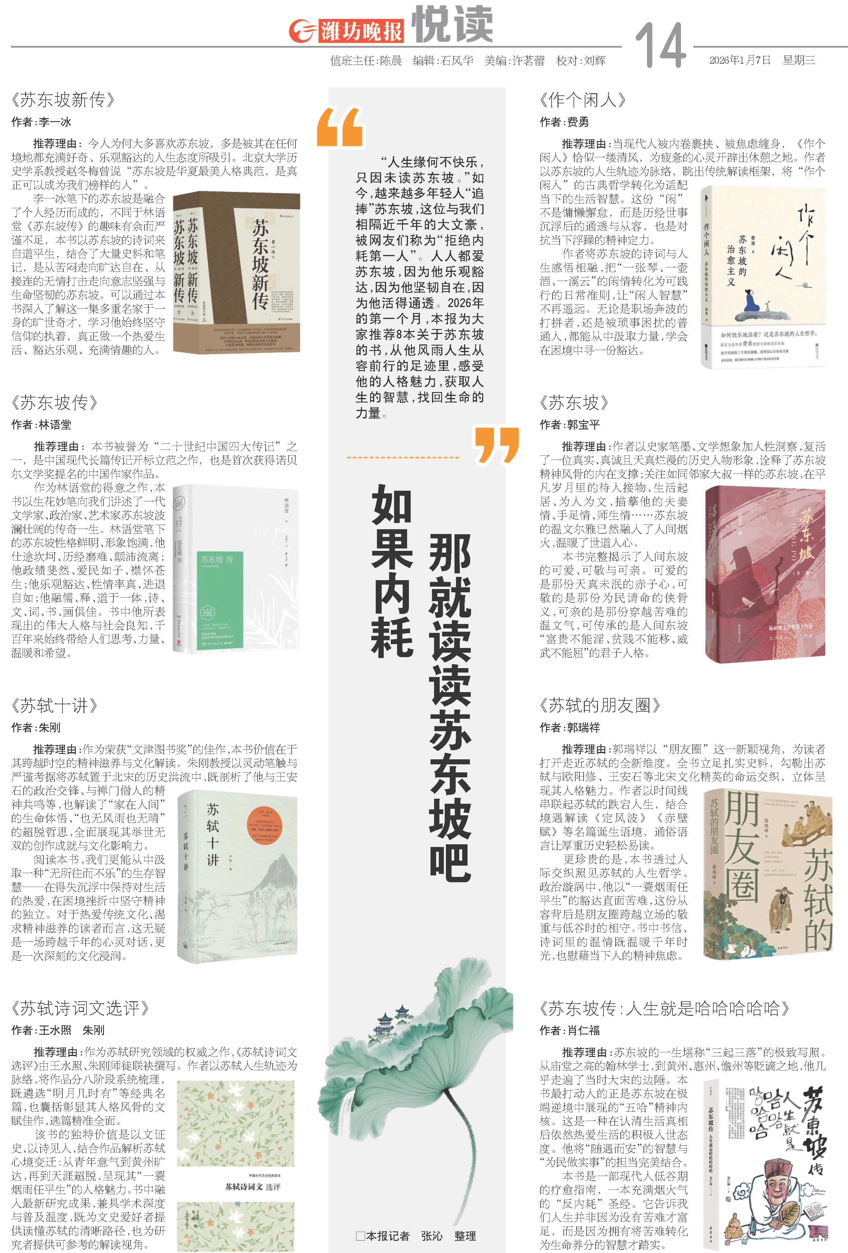 “人生缘何不快乐,只因未读苏东坡。”如今,越来越多年轻人“追捧”苏东坡,这位与我们相隔近千年的大文豪,被网友们称为“拒绝内耗第一人”。人人都爱苏东坡,因为他乐观豁达,因为他坚韧自在,因为他活得通透。2026年的第一个月,本报为大家推荐8本关于苏东坡的书,从他风雨人生从容前行的足迹里,感受他的人格魅力,获取人生的智慧,找回生命的力量。