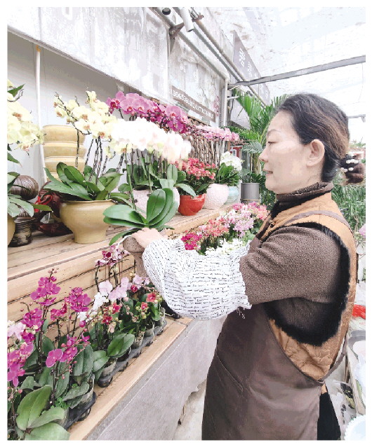 “你瞧,这款‘三文鱼’蝴蝶兰是今年的新品种。”顺着张爱贞手指的方向望去,一株株淡橘粉色的蝴蝶兰泛着细腻的光泽,花瓣边缘自然卷曲,宛如刀工精细的生鱼片,带着高级感。尽管价格在70元一株,比普通蝴蝶兰贵出不少,但很多年轻人愿意为颜值买单。“经常供不应求,进不到货。”张爱贞说,“超群圆舞曲”“霓虹灯”“白富美”等新品种也很受欢迎。