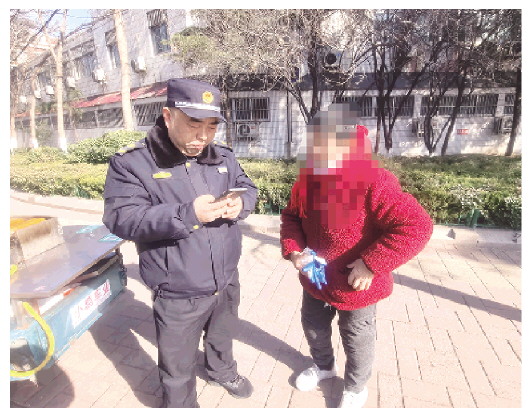 执法队员立即停车上前询问,得知老人年事已高,当天出门后不慎迷了路。由于老人无法提供清晰的家庭住址,执法队员先耐心地与老人聊天,安抚其情绪,后来通过老人手机备忘录里的联系卡,顺利联系到其家属,得知老人家住高新区,当天是乘坐公交车出来,不慎走失。