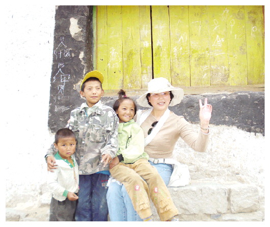 那一天,我在藏族同胞家中看到了毛主席像;我从捧上的银碗中看到了藏族兄弟对援藏人员的爱戴和感恩;我从他们往我包里塞的奶渣中看出了他们的淳朴和善良;我从他们家里的摆设和食物中感到了他们的幸福美满。从藏族同胞家里出来后,街上有几名藏族儿童,一直跟在我身旁,跟我说着藏语,纯净的眼神里传递出的都是热情,但我听不懂,随行司机翻译:“他们想让你也去他们家里看看……”还有比这真诚的邀请更暖人心的吗?但时间来不及了,我把其中一个孩子抱到腿上,又揽起了另外两个孩子跟他们合影留念。