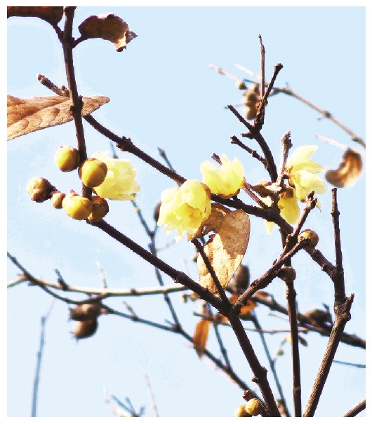 1月20日,记者步入潍坊植物园,园内的蜡梅含苞待放,褐色的枝干上,淡黄色的花瓣随风舞动,淡淡幽香在清冷的空气中散开,绮丽冬景让人沉醉不已。