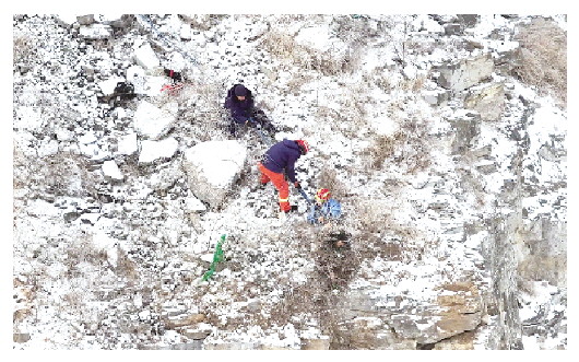 到达山顶后,消防救援人员迅速搭建绳梯,两名经验丰富的消防救援人员顶风冒雪,在队友的默契配合下设置好锚点,沿着湿滑的崖壁索降至被困人员所在的平台。经检查,被困人员小腿轻微受伤,受寒冷天气影响情绪较为紧张,消防救援人员利用无人机为其运来保暖衣物,安抚稳定其情绪。稍作休整后,消防救援人员为被困人员系好安全绳、穿戴好全身吊带,采用轮流搀扶的方式护送其向山下转移。经过一个半小时的紧张救援,被困人员被成功转移到山脚,由现场医护人员进行后续治疗。