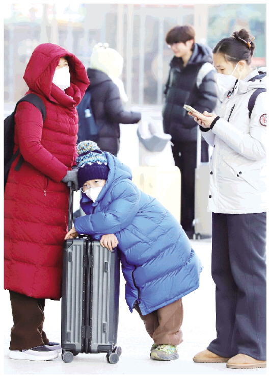 1月22日,在潍坊火车站,旅客们携带大包小包的行李准备乘车。为避开春运高峰,许多来潍工作以及上学的人纷纷选择提前回家与家人团聚。 本报记者 张驰