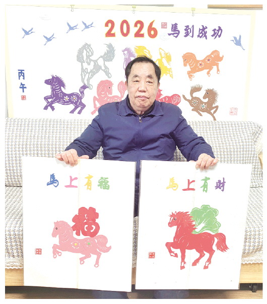 近日,家住奎文区怡和·星国际小区的于振江以生肖“马”为核心元素,历时3个多月创作出“马到成功”“飞马腾云”“马上有福”等剪纸作品,用指尖技艺勾勒新春图景。