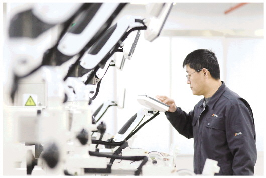 随着春节临近,位于高密的山东泽普医疗科技有限公司智能车间内,员工们忙着抓生产、赶订单、拓产能,全力冲刺“开门红”。图为一名员工正调试智能医疗设备。 本报记者 付生 通讯员 李海涛