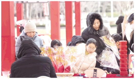 “我来给你吹个小马,祝你马到成功……”在昌乐糖画展位前,手艺人边为市民介绍糖画历史,边用糖料做成马的造型。大人孩子对这甜蜜的口感赞不绝口,纷纷上前购买,希望将这口地道的“潍坊甜”带回家,祝福自己新年甜甜蜜蜜。