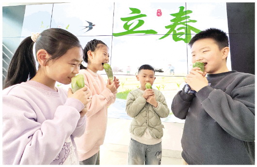 2月3日,在潍城区城关街道曹家巷社区,孩子们正在吃萝卜“咬春”。2月4日4时2分将迎来二十四节气之首:立春。为迎接立春节气,该社区开展了一场“‘咬春’迎立春”活动,在这一天民间有吃萝卜、吃春饼“咬春”的习俗,寓意迎新纳吉,祈愿来年风调雨顺。 本报记者 张驰