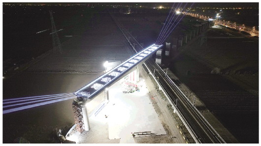 本报讯(记者 王瑗)2月3日,潍宿高铁首个跨潍荣高铁转体梁成功转体(上图)。