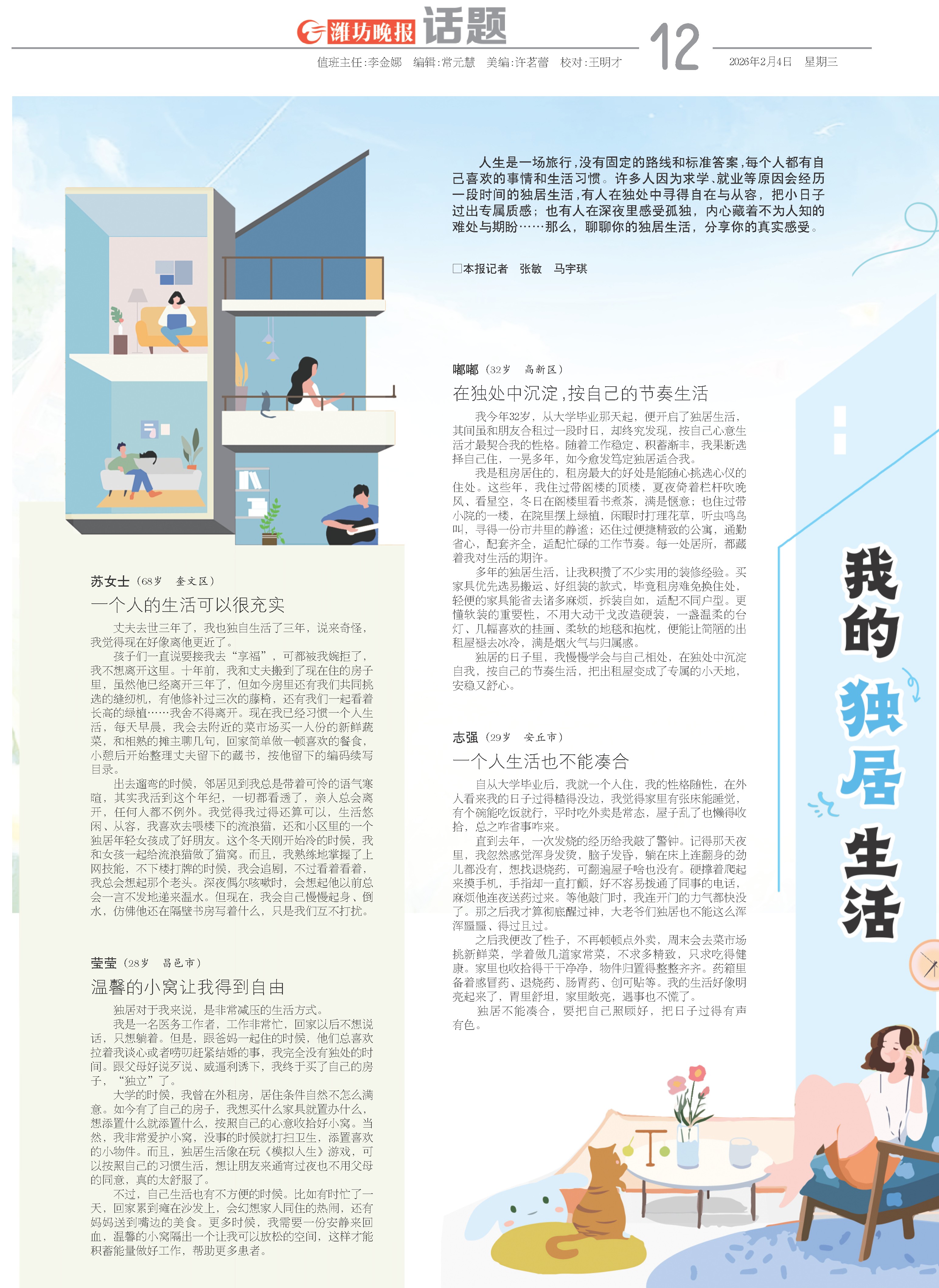 人生是一场旅行,没有固定的路线和标准答案,每个人都有自己喜欢的事情和生活习惯。许多人因为求学、就业等原因会经历一段时间的独居生活,有人在独处中寻得自在与从容,把小日子过出专属质感;也有人在深夜里感受孤独,内心藏着不为人知的难处与期盼……那么,聊聊你的独居生活,分享你的真实感受。