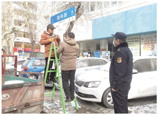 因受长期日晒雨淋、自然老化、外力碰撞及施工影响,中心城区部分路名牌出现倾斜、破损、字迹模糊或褪色等问题,不但不利于市民出行,也影响了城市形象。为此,在春节来临之际,市城市管理局开展了路名牌专项整治行动。