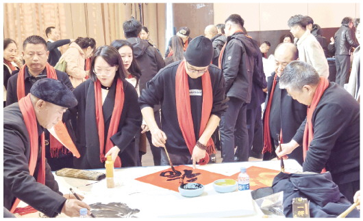 研究会现场组织了“马年迎新春笔会”(如图),书画名家与爱好者即席挥毫,围绕状元文化与马年主题创作出一幅幅气韵生动的作品。