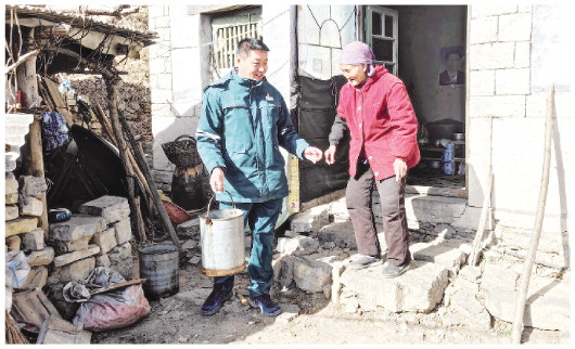 本报讯(记者 尹莉莉 刘元超 王瑗 通讯员 王晖)2月16日,除夕,青州市庙子镇杨集庵村格外寂静。上午11时,这个只有三个人的村庄却迎来了“亲人”,国网青州市供电公司庙子供电所的电工岳玉强和徒弟张云生带着自己购买的年货前来巡检线路。看到岳玉强又要去提水桶,90岁的李元花拉着他的手说:“小岳,你什么时候都想着俺们,你和曹师傅一样都是俺们的亲人。”