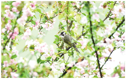 近日,气温升高,贵州省仁怀市街边的海棠花迎风绽放,小鸟在海棠花丛中停歇,蜜蜂忙着在海棠花间采蜜,呈现一派鸟语花香、生机盎然的春日美景。